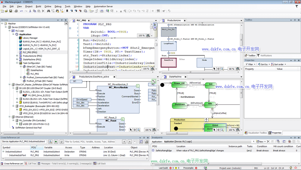 內(nèi)置的仿真和 HMI 功能:CODESYS 具有內(nèi)置的 PLC 仿真和內(nèi)置的 HMI 功能。這意味著您可以在沒(méi)有實(shí)際 PLC 設(shè)備的情況下開發(fā)和調(diào)試 PLC 程序,并可以在同一個(gè)環(huán)境中創(chuàng)建和測(cè)試 HMI 界面。這減少了對(duì)額外應(yīng)用的需求,使您更加高效。