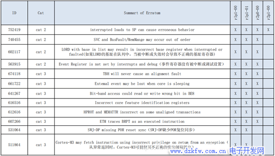 1、內(nèi)核GD32采用二代的M3內(nèi)核,STM32主要采用一代M3內(nèi)核,下圖是ARM公司的M3內(nèi)核勘誤表,GD使用的內(nèi)核只有752419這一個(gè)BUG。