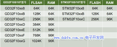 10、105&107系列STM32和GD的差別GD的105/107的選擇比ST的多很多,具體見下表: