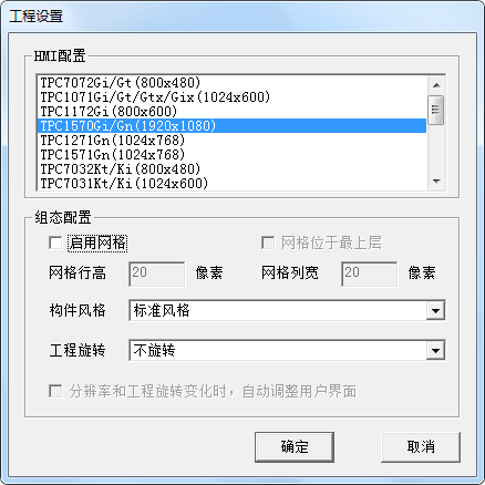組態(tài)配置-啟用網(wǎng)格:就是在工程里是不是加入網(wǎng)格,網(wǎng)格不會顯示在實際屏幕上,用于定位尺寸坐標(biāo)使用;