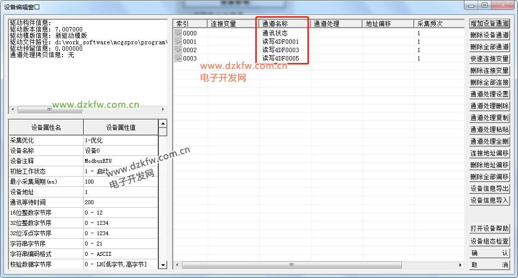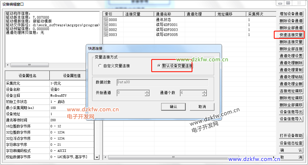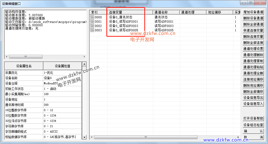 可以看到我們已經(jīng)把變量連接進去了,分別為3個,4DF0001、4DF0003、4DF0005,分別對應(yīng)三個通道。