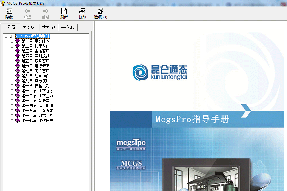 1. 組態(tài)環(huán)境基本概念和框架,函數(shù)等,可以通過 [MCGS Pro版幫助系統(tǒng)] 查看。點擊菜單欄【幫助】->【幫助】會彈出。