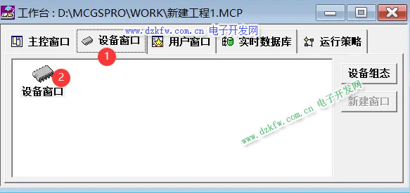 (1)點擊設備窗口,雙擊設備②處的設備窗口,如圖2所示。進入設備窗口后右鍵選擇“通用窗口父設備”,如圖3所示。