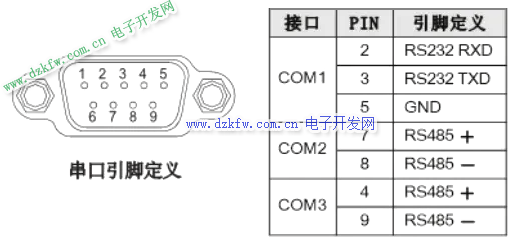 根據MCGS設備手冊說明得知,串口引腳定義如圖11所示。