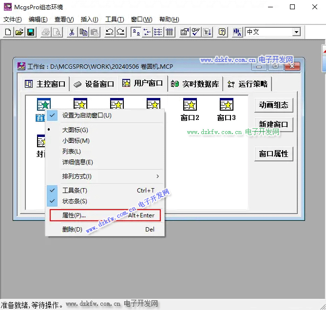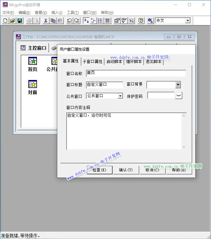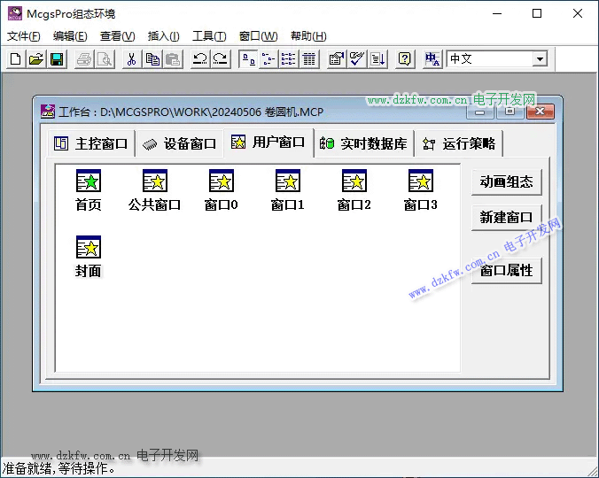 3、打開工作臺,在用戶窗口中創建HMI畫面窗口;