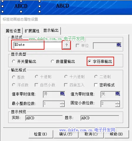 2、擴展屬性默認不變,直接修改顯示輸出;表達式選擇右邊問號,調出系統變量$Date,字符串輸出;