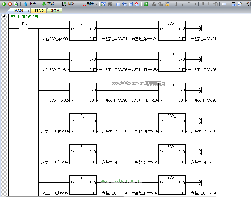 第二步:(雙擊打開窗口1,設計如下圖S7-200SMART PLC 實時時鐘時間(讀。┊嬅妫
