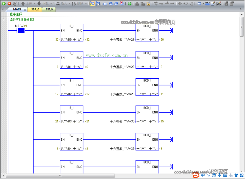 第二步:(用字節轉整數+BCD碼轉整數指令來讀取實時時鐘時間(B_I—BCD_I))。