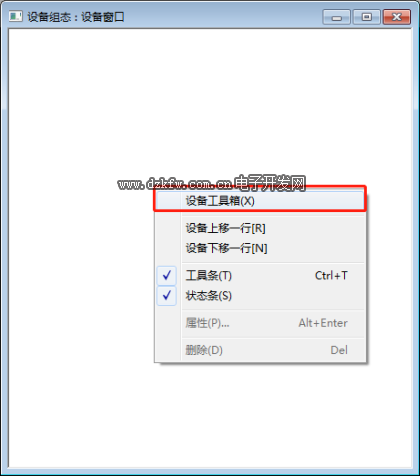 第五步:(打開設備窗口鼠標點擊空白處并右擊選擇設備工具箱)。