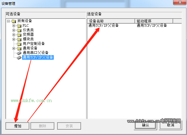 第七步:(選擇通用TCP/IP父設備,點擊新增,右側選定設備就會自動添加進去)。