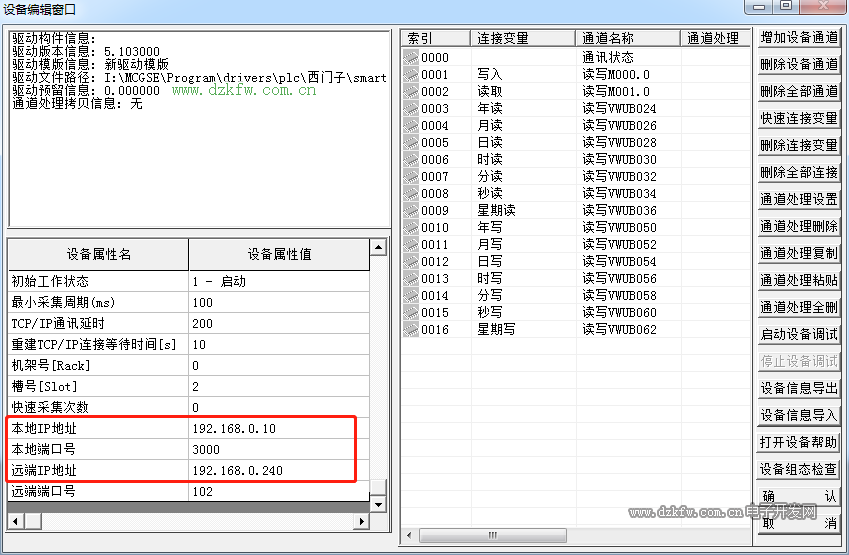 遠程IP地址:192.168.0.240填寫PLC通信IP地址)