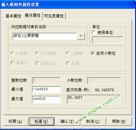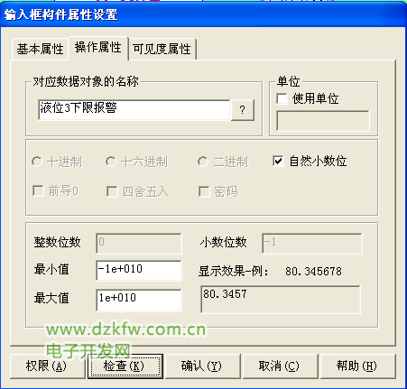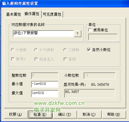 圖4-14“液位1上限”和“液位1下限”輸入框屬性設置