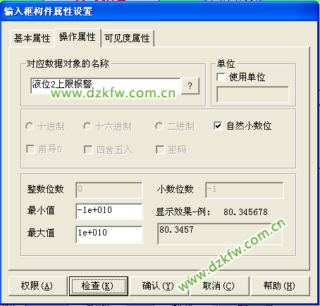圖4-15“液位2上限”和“液位2下限”輸入框屬性設置