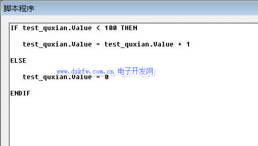2、在運行策略中新建一個循環策略,通過腳本來實現“test_quxian”變量的數值變化,變化范圍為0--100。