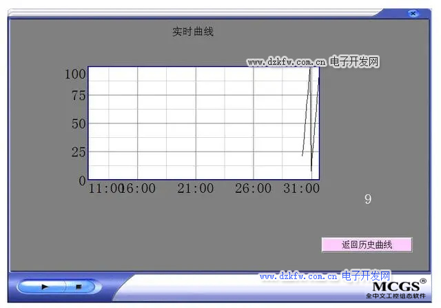 實時曲線反映的是現場數據的實時性,以監測該點在現場工況變化的情況下的控制穩定性,因此在實現時需顯示曲線的動態變化。通常當前點在曲線的最右端顯示,隨著時間的推進整個曲線動態地向左移動。歷史曲線反映的是過去一段時間內某個或多個監測點的變化趨勢,并供工藝人員分析工藝流程的穩定性和故障原因。明白了實時曲線和歷史曲線的概念后,我們接下來開始學習MCGS如何做實時曲線和歷史曲線。