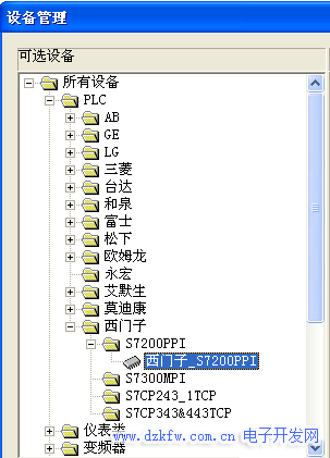 MCGS嵌入版組態(tài)軟件設(shè)備驅(qū)動程序的選擇,在設(shè)備管理窗口左邊的列表框中列出了系統(tǒng)目前支持的所有設(shè)備(驅(qū)動程序在\MCGSE\Program\Drivers目錄下),設(shè)備是按一定分類方法分類排列的,用戶可以根據(jù)分類方法去查找自己需要的設(shè)備。例如用戶要查找西門子S7-200PLC的驅(qū)動程序,可以在DRIVERS目錄下先找到PLC目 錄,然后在PLC目錄下的找到西門子目錄,里面即有西門子S7-200的PLC。在眾多的設(shè)備驅(qū)動中方便快速的找到所需要的設(shè)備驅(qū)動,系統(tǒng)對設(shè)備驅(qū)動采用了一定的分類方法排列,如圖8-3所示。