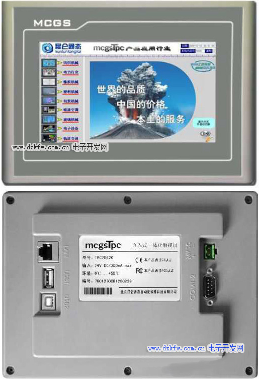 TPC7062型MCGS觸摸屏是北京昆侖通態(tài)自動化科技有限公司生產(chǎn)的面向與工業(yè)自動化領(lǐng)域的一款觸摸屏, MCGS嵌入版組態(tài)軟件是專門針對MCGS觸摸屏來組態(tài)使用的一款組態(tài)軟件。北京昆侖通態(tài)自動化科技有限公司的MCGS觸摸屏種類繁多并且尺寸大小也不盡相同,本節(jié)以工業(yè)現(xiàn)場應(yīng)用較多的TPC7062型MCGS觸摸屏為例,進(jìn)行講解MCGS觸摸屏的特點以及使用注意事項。