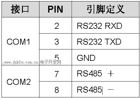MCGS觸摸屏外部接口介紹說明如表8-1所示。MCGS觸摸屏串口引腳定義如表8-2所示。