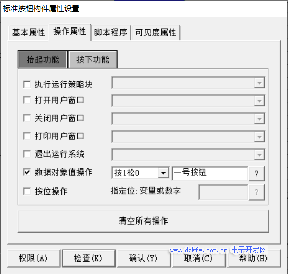 其他位號操作屬性設置與一號的操作屬性設置一樣,但需要對應號位設置。開始與清零的操作按鈕與指示燈都是相同操作,需要對應數據的操作對象即可。