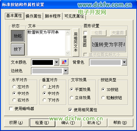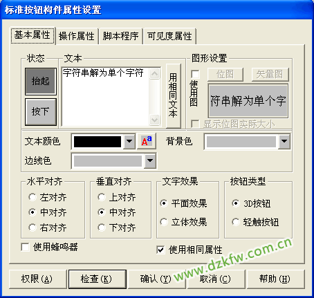 對4個標準按鈕進行屬性設置,如圖12-8至12-11所示。