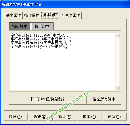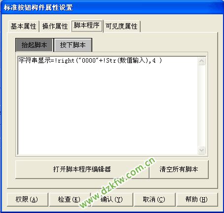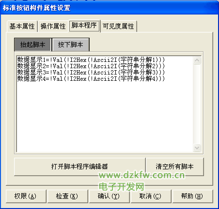 腳本程序輸入完成后點擊檢查按鈕,確認正確后退出。用戶窗口的畫面組態完成后,可以用“編輯條” 中的工具進行調整相應的構件的位置關系。