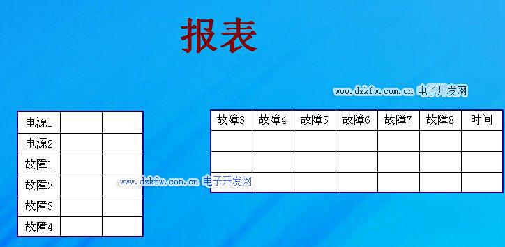 ·實時數據是實時地將數據對象變量值按報告格式顯示出來。實時表格的設置如下:進入“報表”窗口,點擊工具箱中的自 由表格圖標,拖放到窗口適當位置并調整大小。在窗口中拉出一個實時數據報表,再通過增加行,刪除列,表格設置為七行兩列形式,然后在第一列添加如下6個變量:。最后在 后一列各自連接對應變量:電源1 、電源2、故障1、故障2、故障3、故障4完成實時數據的連接,完成實時數據的制作。如圖實訓4-7所示。