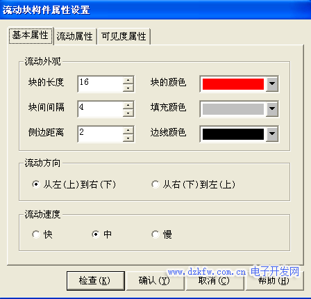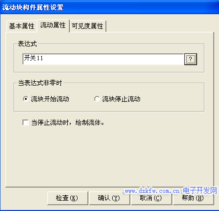 ·變電所網絡監控系統主要的動畫連接就是供電網絡的停送電的切換。動畫的實現在組態環境里面使用流動塊來完成的。動畫連接的設置如下:雙擊流動塊,彈出“流動塊構件屬性 設置”窗口進行流動塊的“流動屬性”設置。修改“表達式”連接的對象變量名稱,其他屬性不變。2個變壓器:雙擊“變壓器”選中“數據對象”進行數據對象連接。對2個電源按鈕進行設置:雙擊“電源1”按鈕進行數據對象連接。8個故障標簽:雙擊“故 障1”標簽進行單元屬性設置,左邊8個輸出標簽:雙擊“A-B電路故障”標簽進行單元屬性設置。單擊選擇變量按鈕選中 變量“故障1”確定。設置其他輸出標簽。15個開關:雙擊開 關,選中“按鈕輸入”,則會出現選擇變量按鈕,單擊選中開關確定。17個指示燈進行相應的變量連接即可。變壓器進行數據對象連接使用相同方法進行動畫連接。流動塊的設置如圖4-5所示。