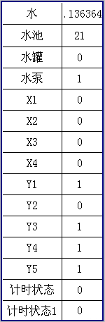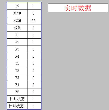 ·進入模擬工廠監控系統按啟動按鈕SB1后系統運行,按停止按鈕SB2后系統停止。工廠監控系統分三個階段 第一階段的送料控制,首先檢測下液面X1、爐內溫度X2、爐內壓力X4是否都為0,0則開啟排氣閥Y1和進料閥Y2。液位上升到上液位X3時,因關閉排氣閥Y1和進料閥Y2。延時10s,開啟氮氣閥Y3。最后當爐內壓力升到100時,開啟壓力變送器X4(即X4=1)和加熱爐電源Y5,關閉氮氣閥Y3。第二階段的控制裝置加熱過程,控制裝置電源Y5=1時,溫度計開始進行上升。其次當溫度計=100攝氏度時,開啟溫度變送器X2(即X2=1),關閉控制裝置電源Y5。第三階段的泄放控制,首先在第二階段基礎上延時10s,當前值1=10s時 打開泄放閥Y4和排氣閥Y1。當水位減少到小于70時,壓力表與溫度計開始降低。然后當溫度計與壓力表下降到0時,關閉壓力變送器X4和溫度變送器X2。當水位下降到0時,關閉排氣閥Y1、氮氣閥Y3、泄放閥Y4,定時器計時狀態都清0。最后當水池=80時,計時條件都置1。當水池=0時,定時器開始復位,當溫度變送器X2=1時,定時器1開始復位。