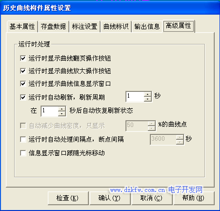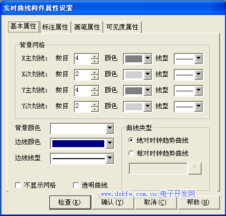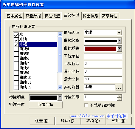 ·歷史曲線構件是實現了歷史數據的曲線瀏覽功能。運行時, 歷史曲線構件能夠根據需要畫出相應歷史數據的趨勢效果圖。歷史曲線主要用于事后查看數據和狀態變化趨勢和總結規律。雙擊進入“歷史曲線”窗口在“工具箱”中單擊“歷史曲線”圖標, 拖放到適當位置并調整大小。雙擊歷史曲線構件彈出“歷史
