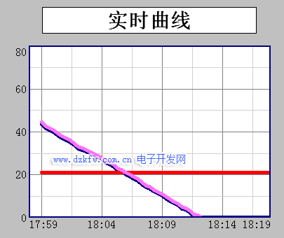 ·實時曲線構件是用曲線顯示一個或多個數據對象數值的動畫圖形,象筆繪記錄儀一樣實時記錄數據對象值的變化情況。在MCGS嵌入版組態軟件的組態平臺上,在“用戶窗口”中雙擊“數據顯示”進入,在“工具箱”中單擊“實時曲線”圖標并拖放到適當位置調整大小。雙擊曲線,彈出“實時曲線構件屬性設置”窗口。雙擊曲線彈出“實時曲線構件屬性設置”窗口,在基本屬性中Y主劃線設為4,標注屬性時間單位為秒,最大值為80,畫筆屬性中連接3個液位并分別設置顏色。最后按F5或直接按下載運行的圖標,實時曲線的運行環境效果如圖實訓5-21所示。