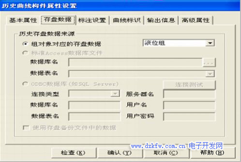 曲線構件屬性設置”窗口,并對歷史曲線構其進行相應屬性設置。注意:“存盤數據”中的“組對象對應的存盤數據”在連接變量的過程 “運行組”的“高級屬性”周期和時間都改為1秒, 標注設置和曲線標識如圖實訓 5-22歷史曲線窗口所示。