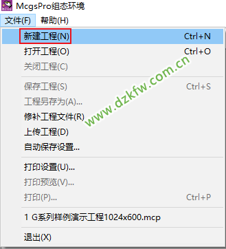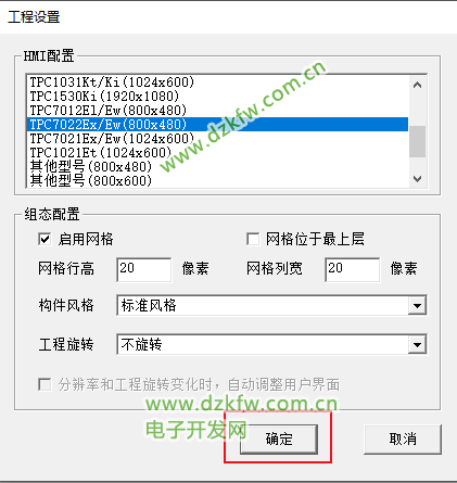 3.新建一個McgsPro工程,選擇HMI為TPC7022Ex。