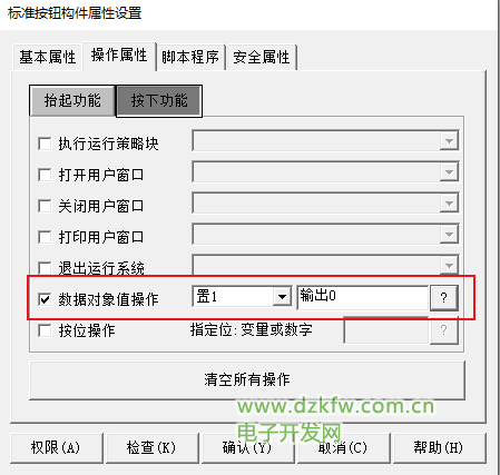 10.用戶窗口上放置1個按鈕,按鈕按下或者彈起的時候,對對象輸出0進(jìn)行操作。