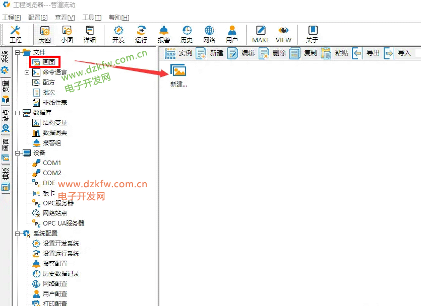 1打開組態王軟件點擊“數據詞典”,然后雙擊右側的“新建”圖標。