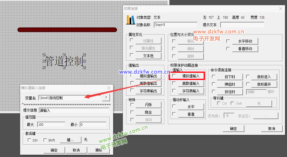 所謂“動畫連接”就是建立畫面的圖素與數據庫變量的對應關系。