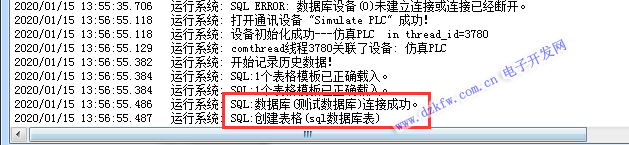 然后運(yùn)行組態(tài)王,就會(huì)連接數(shù)據(jù)庫,并在數(shù)據(jù)庫中建名為“sql數(shù)據(jù)庫表”的一個(gè)表格