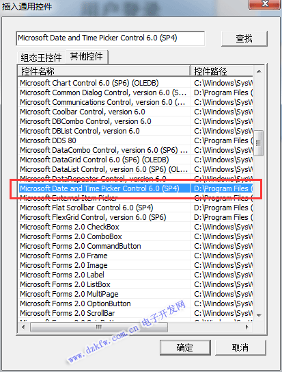 微軟日歷控件(電腦上要裝office才行),插入通用控件-其他控件