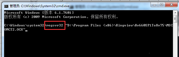 然后以管理員身份運(yùn)行cmd,輸入指令regsvr32進(jìn)行注冊(cè),路徑前后加雙引號(hào)(英文狀態(tài)下)