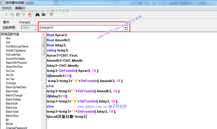 雙擊日歷控件-事件-change,雙擊后面的關(guān)聯(lián)函數(shù),先寫開始