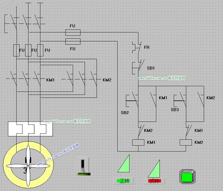 2 、畫出電動機的正反轉控制電氣原理圖,并且以組態王的動畫形式表現。
