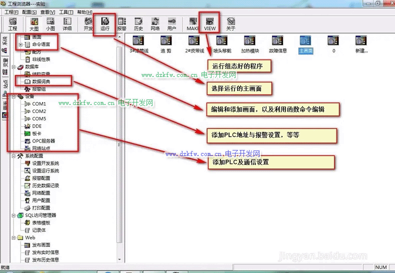 再畫面上添加新畫面,畫好元件后,把電腦連上PLC,點擊VIEW運行新建的工程,通信成功與否,可以通信commerr函數(shù)返回的參數(shù)確定是否通信成功,也可以查看信息窗口是否連接成功