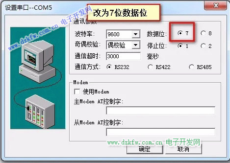 6、以上步驟結(jié)束后,左側(cè)設(shè)備下面會自動添加COM5端口,雙擊COM5彈出通信參數(shù)設(shè)置,把數(shù)據(jù)位8改成7。其它不變。