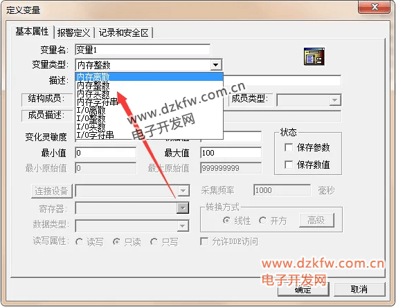 內存變量是指這個變量只能在組態王內部調用,