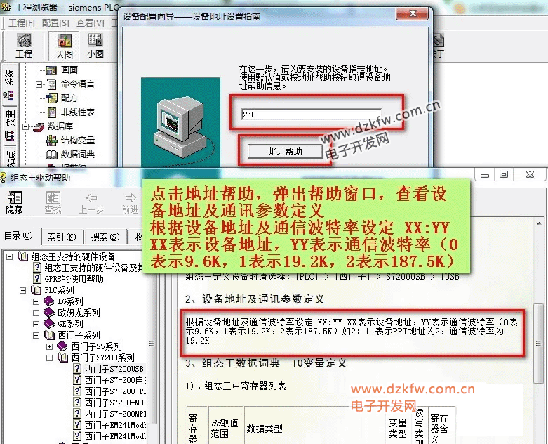 點擊地址幫助,彈出幫助窗口,查看設備地址及通訊參數定義