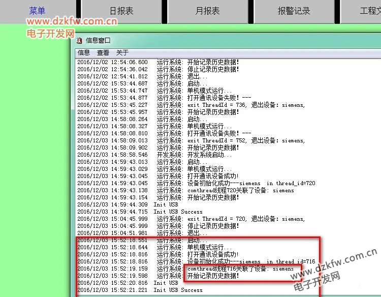 用可以通過信息窗口查看組態王與PLC有沒有連接成功,如圖所示以關聯設備