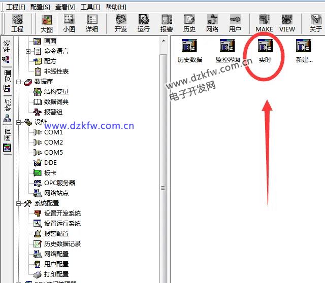 打開組態王組態軟件,在組態界面中選擇需要插入按鈕的窗口,并點擊打開。