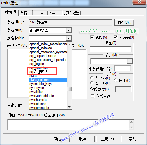 選擇所用數(shù)據(jù)庫中的表名、字段名