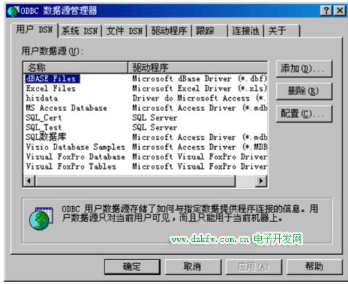 (2)雙擊“數據源”,選擇“用戶DSN”選項卡: