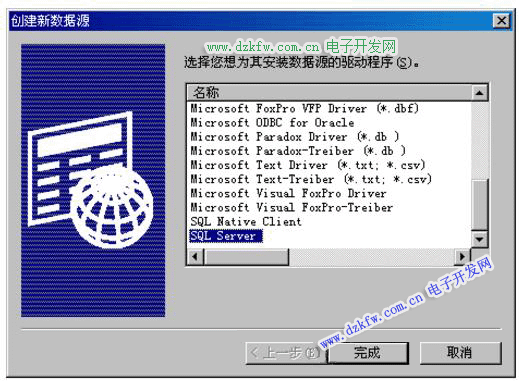 (3)點擊“添加”,選擇“SQL Server”,點擊“完成”: