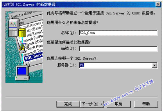 4)寫入“數據源名稱”,選擇需要連接的“服務器”,點擊“下一步”: